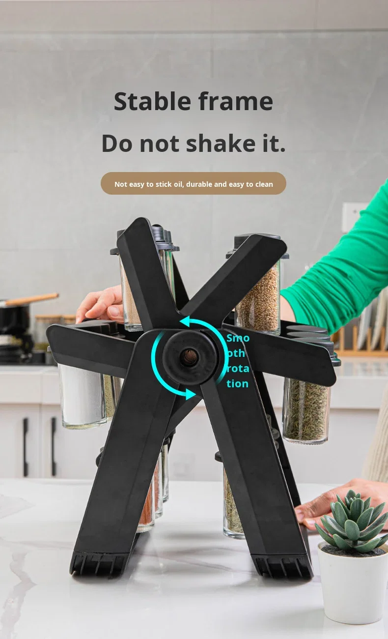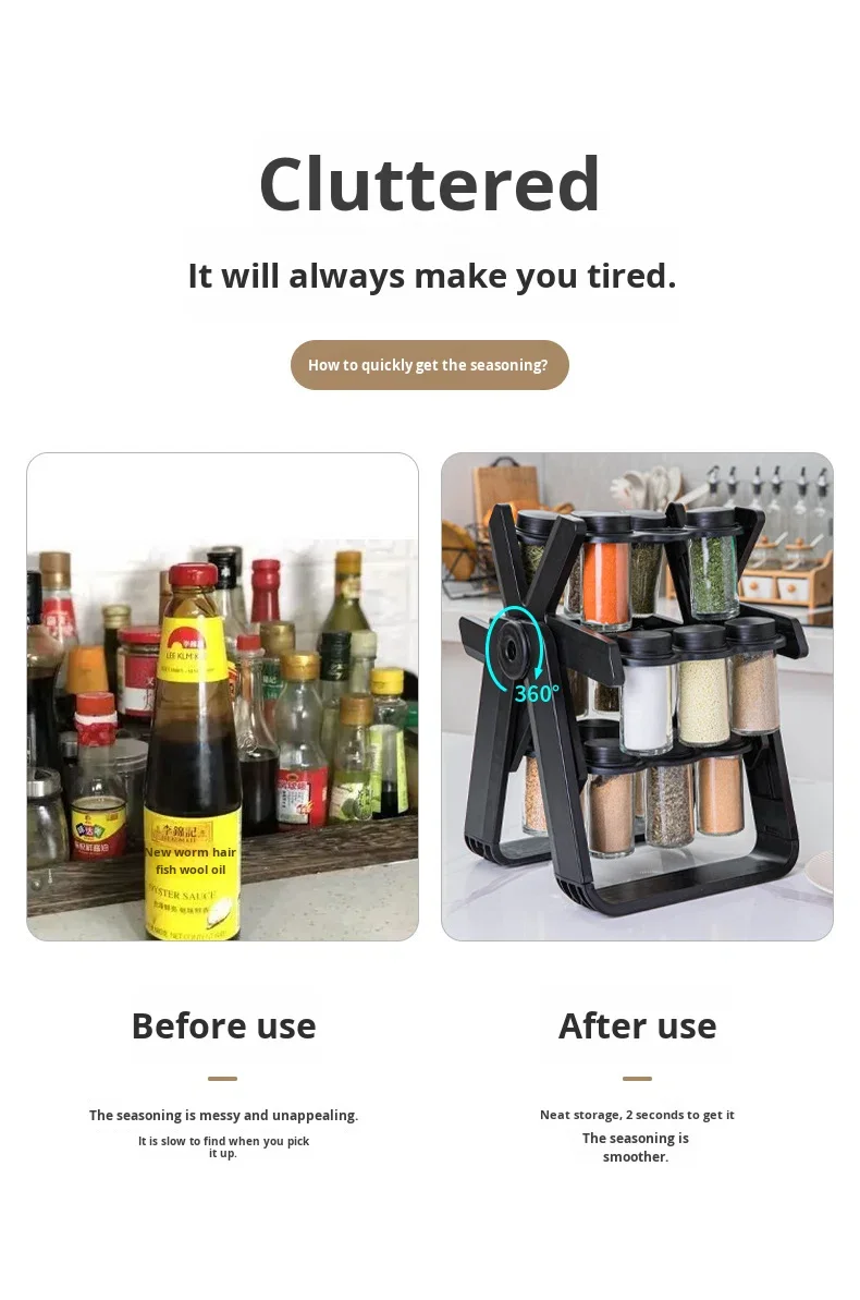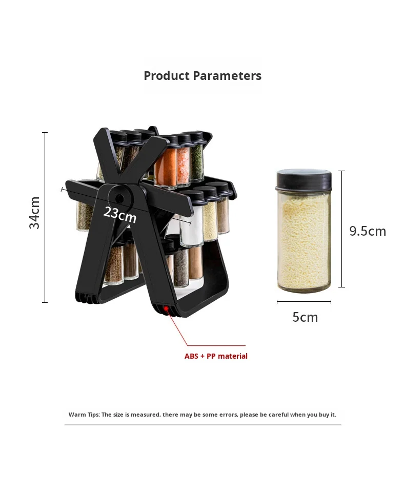 18-Piece Kitchen Storage Spice Rack Set with Glass Seasoning Jars and Rotating Organizer Hand Wash Only ABS+PP+Glass Material