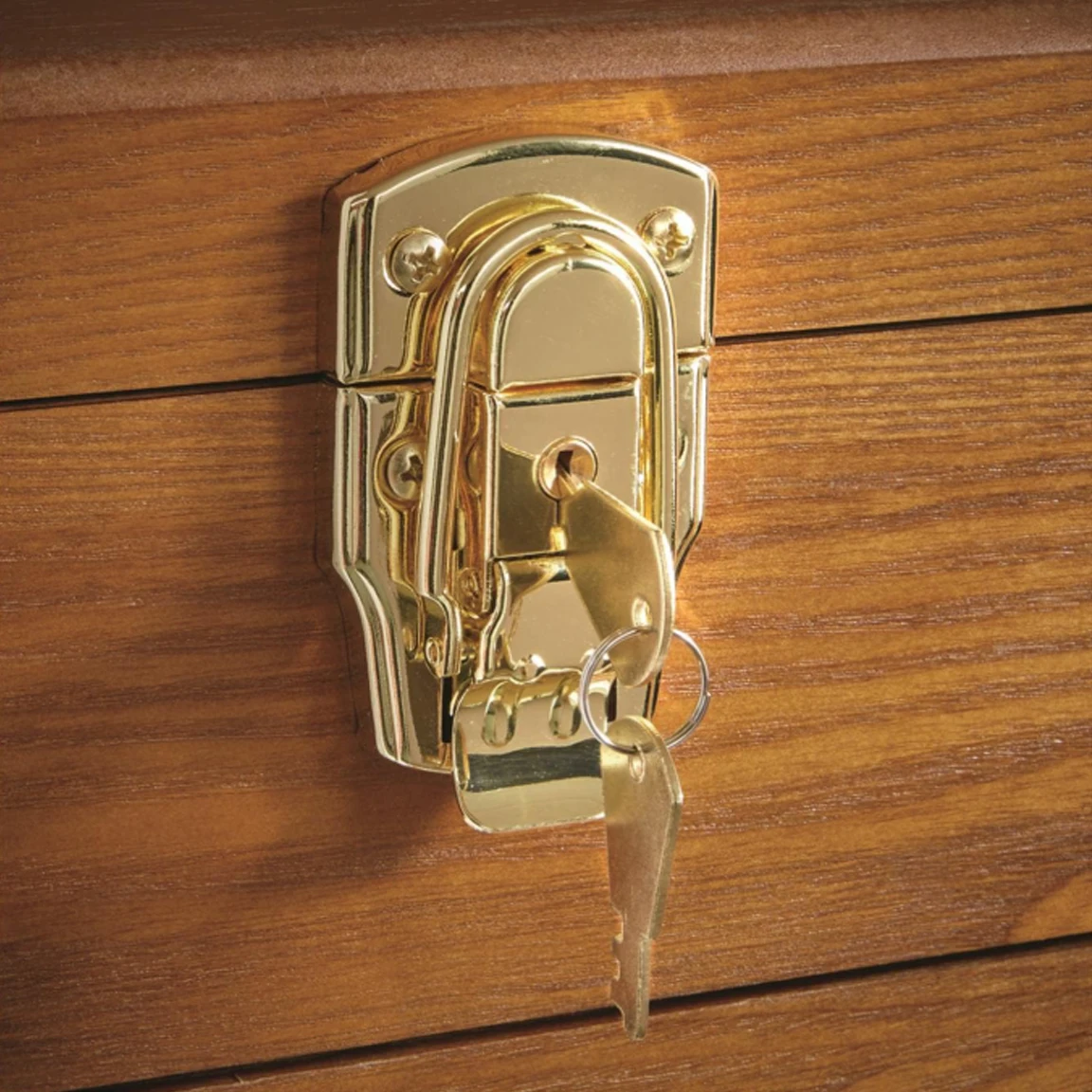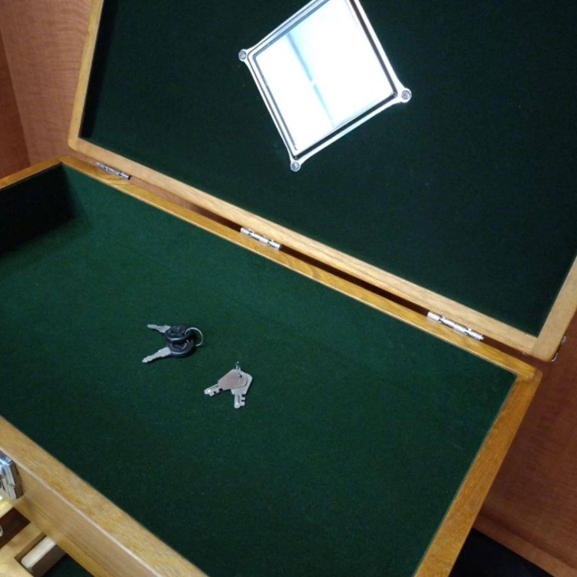 The drawer organizers are all felt-lined to keep your collection safe from scratches. Brass-tone metal pulls, latches, locks, carry handles and corner reinforcements.