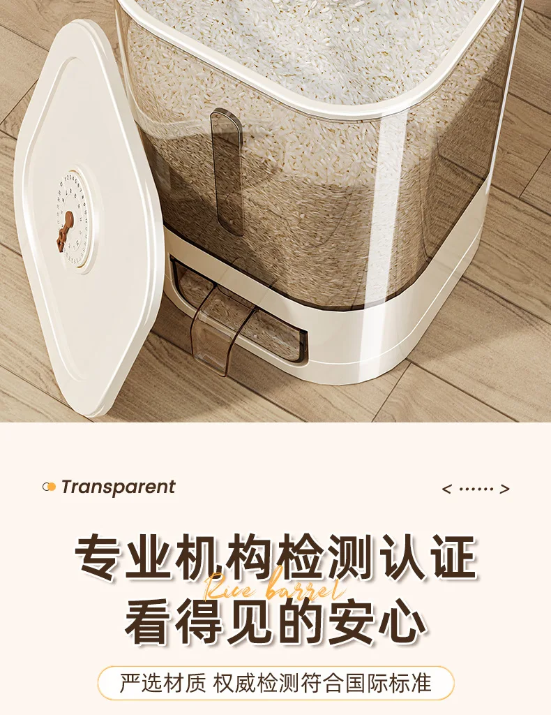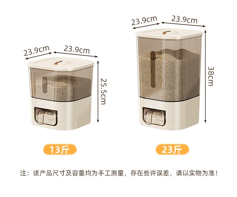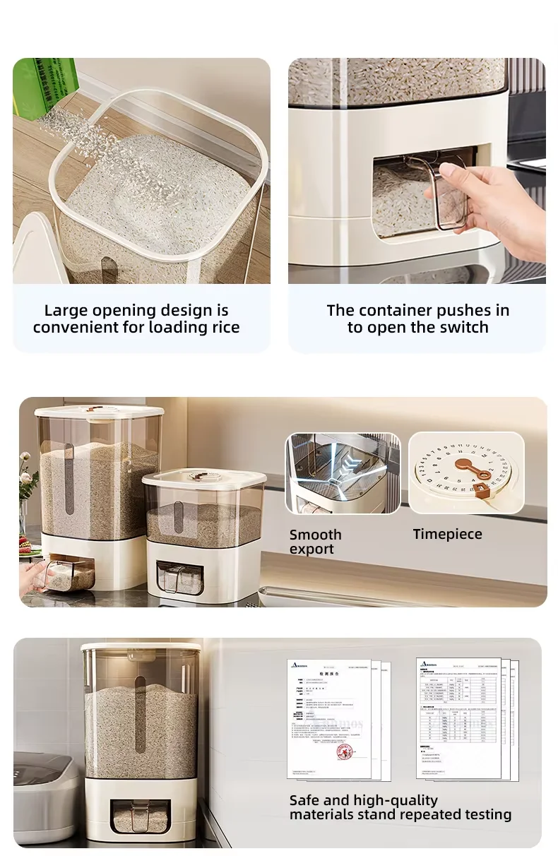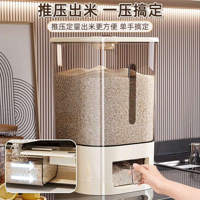 1. It is more convenient to take rice. No need to press the button, just put the rice cup in and the rice will automatically fall into the rice cup.2. The design has compartments for storing spices and insect repellent, which is insect-proof to a certain extent. 3. Equipped with a dial to record the time and the date the rice was stored. |