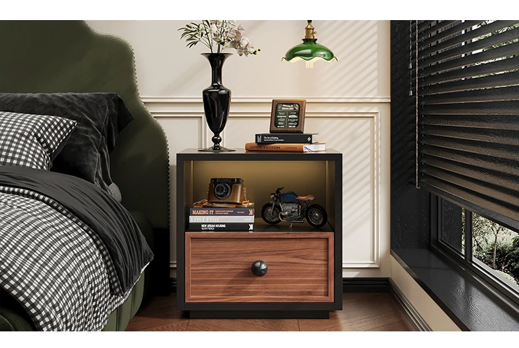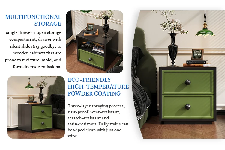 Bedroom Steel Nightstand with Anti-Rust Coating for Long Use