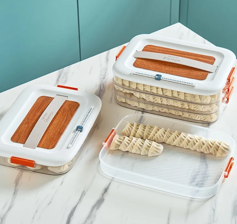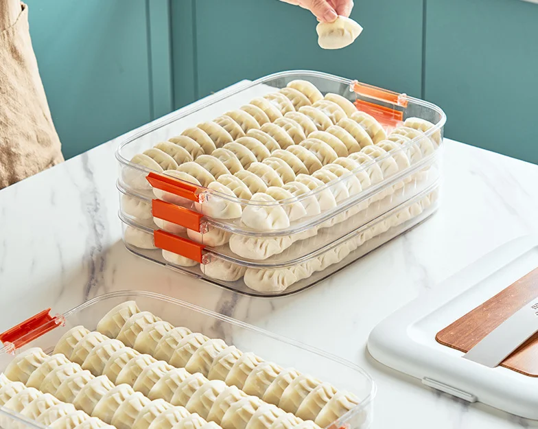 Dumpling Plastic Kitchen Storage Box Refrigerator Freezing 3 Layer Frozen Box Crisper Food Grade Stackable Food Containers