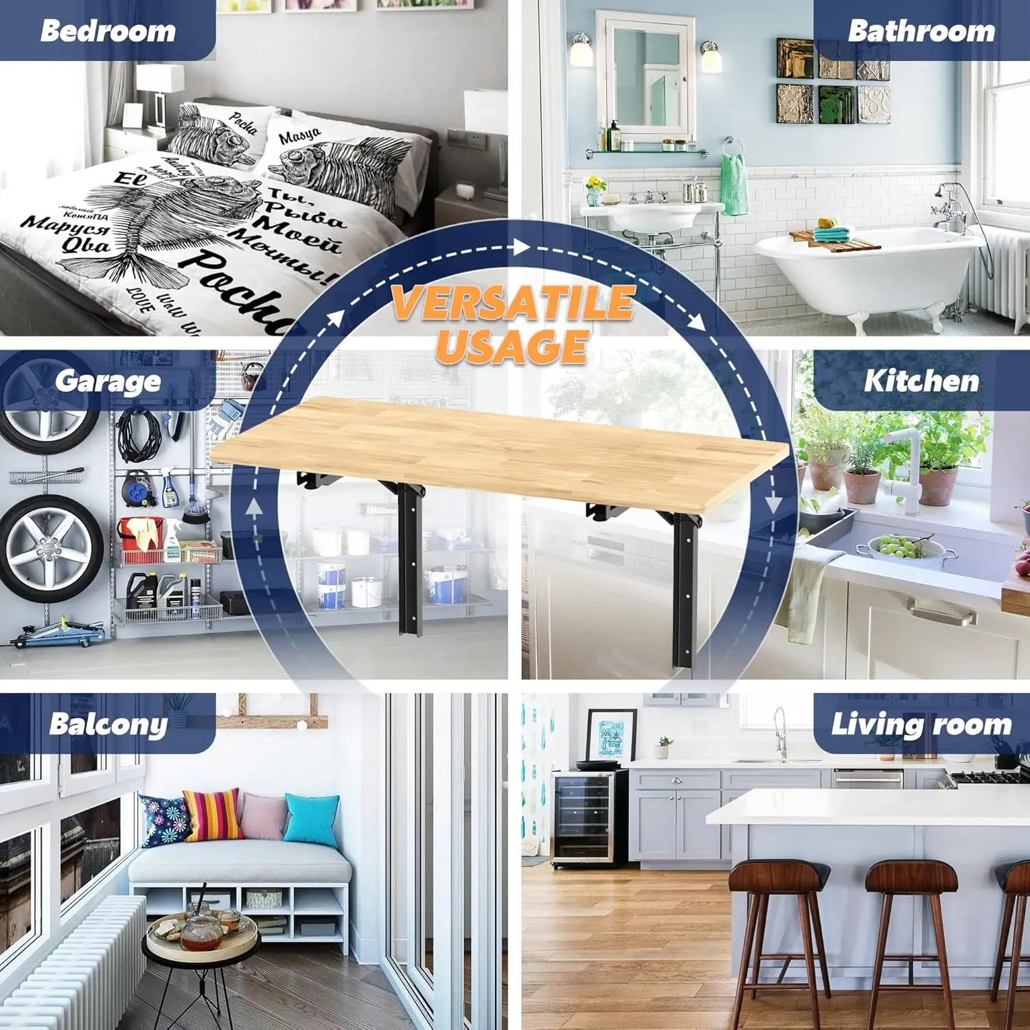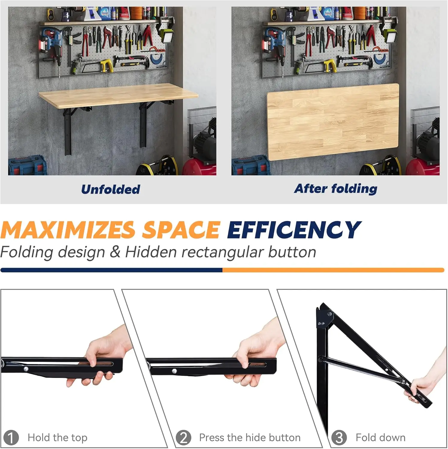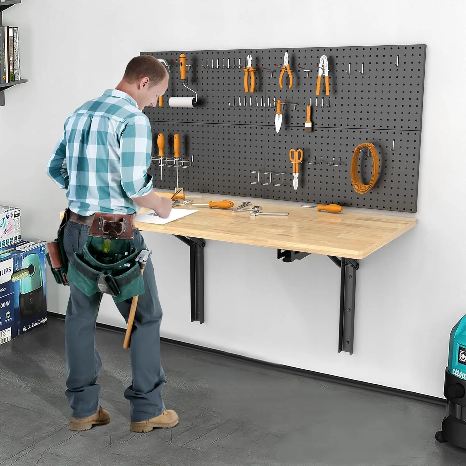 Heavy Duty Wall-Mounted Folding Workbench Modern Foldable Work Table Desk for Kitchen Garage Office Supports 550 lb for Tools