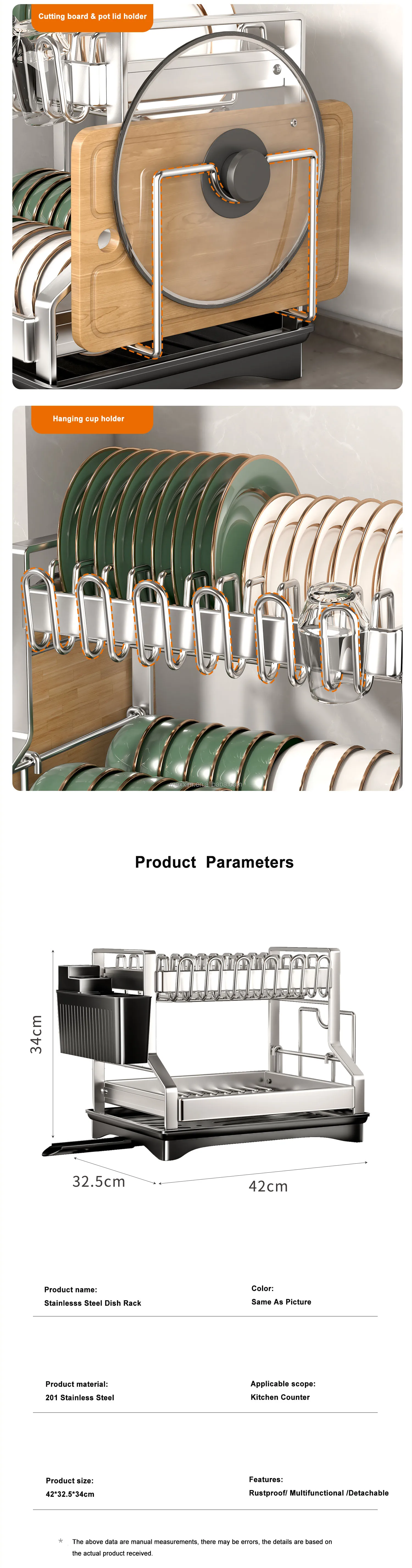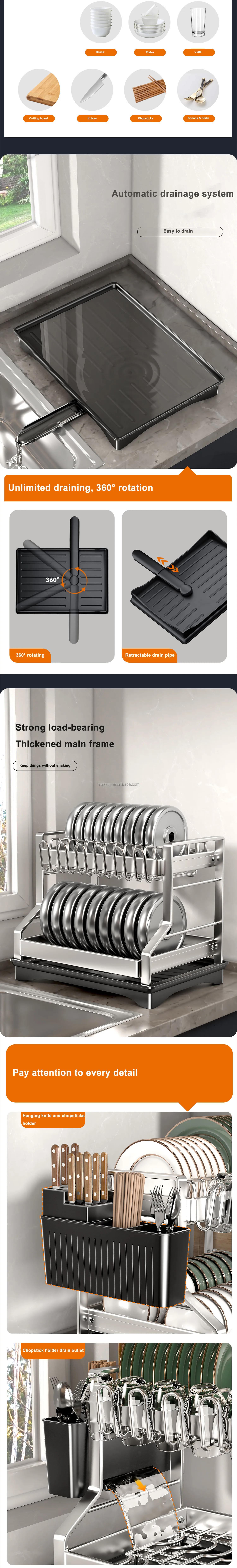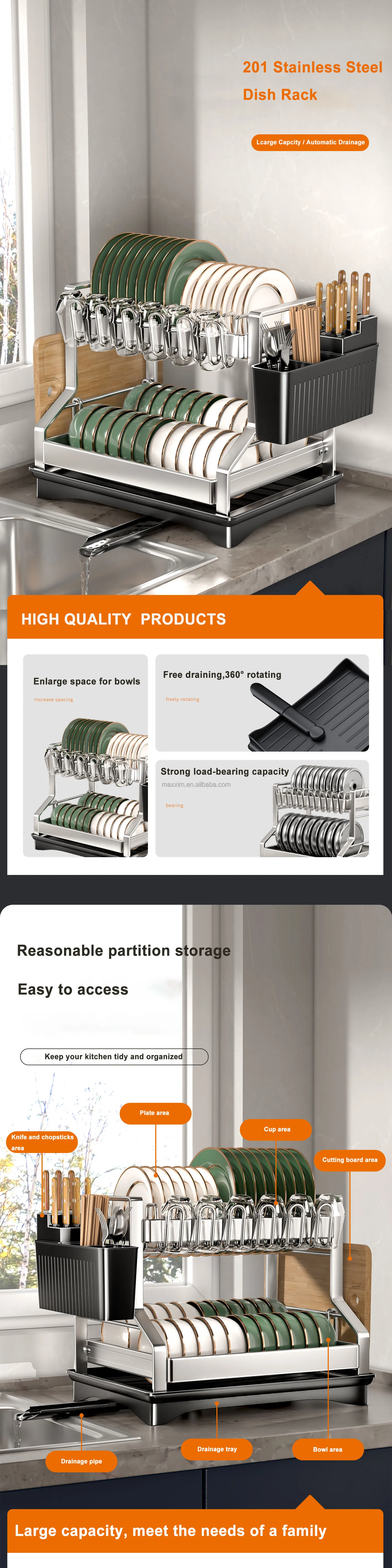 KS834-1 is a new type of 2 tiers dish drying rack with cup holder, cutting board holder, chopsticks rack and draining tray etc., it's widely used in the kitchen countertop for home space saving.