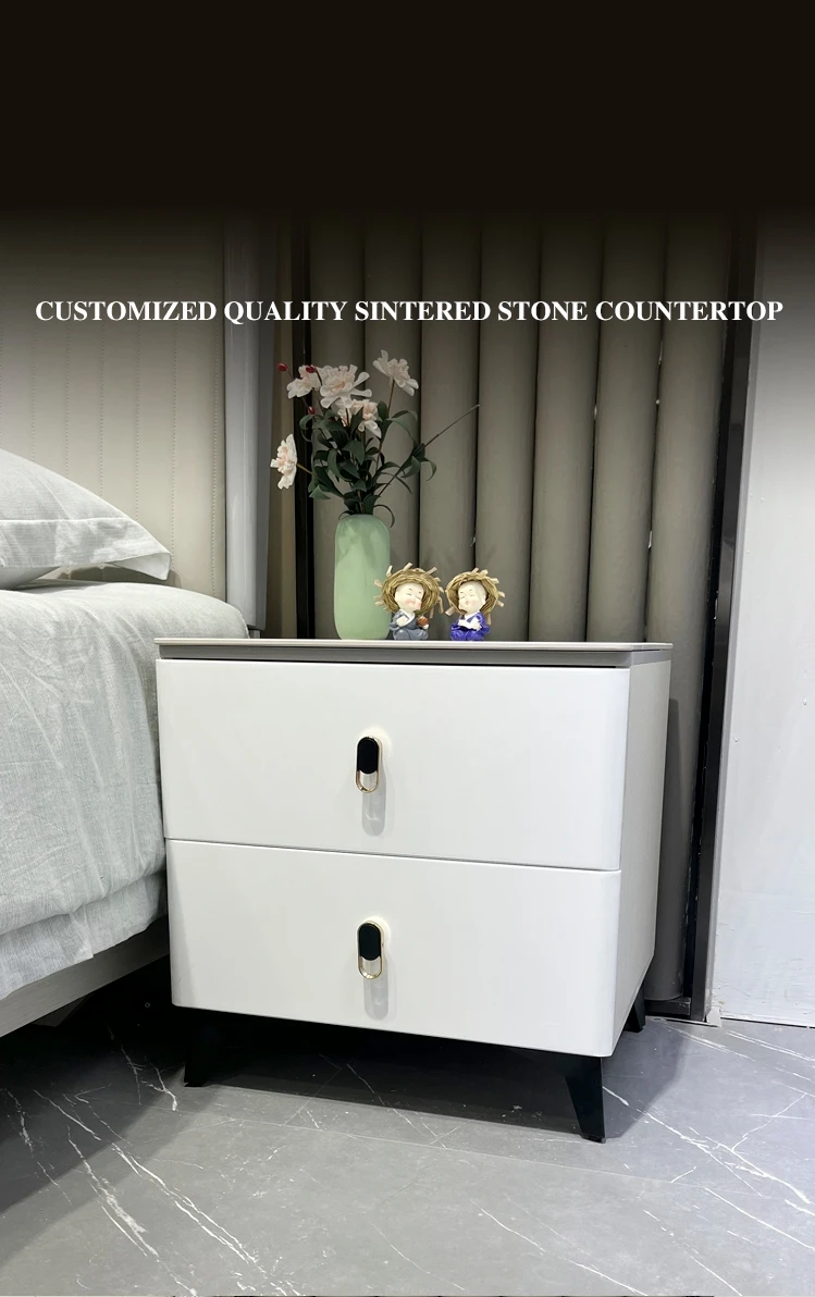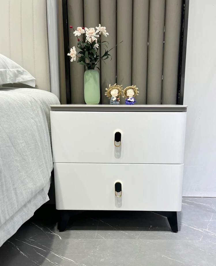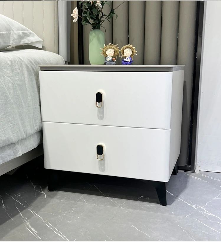 Light Luxury Nightstand with Lock Simple Modern Classic Design Drawer Storage Complete 2 Drawer Bedroom Bedside Cabinet
