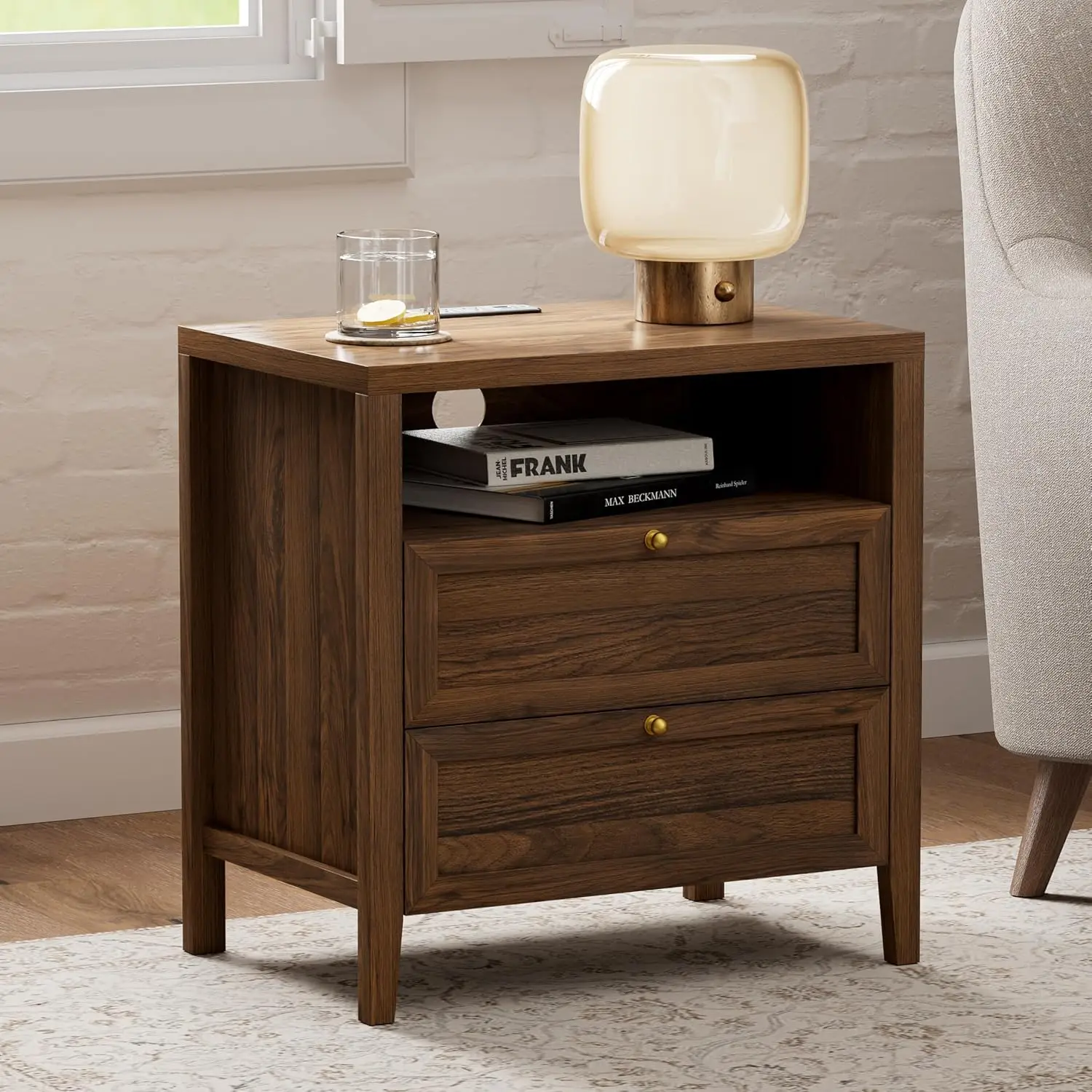 Modern Nightstand Bedside Table with Drawers for Bedroom and Wooden Sofa Side Table Cabinet Organizer with Shelf for Living Room