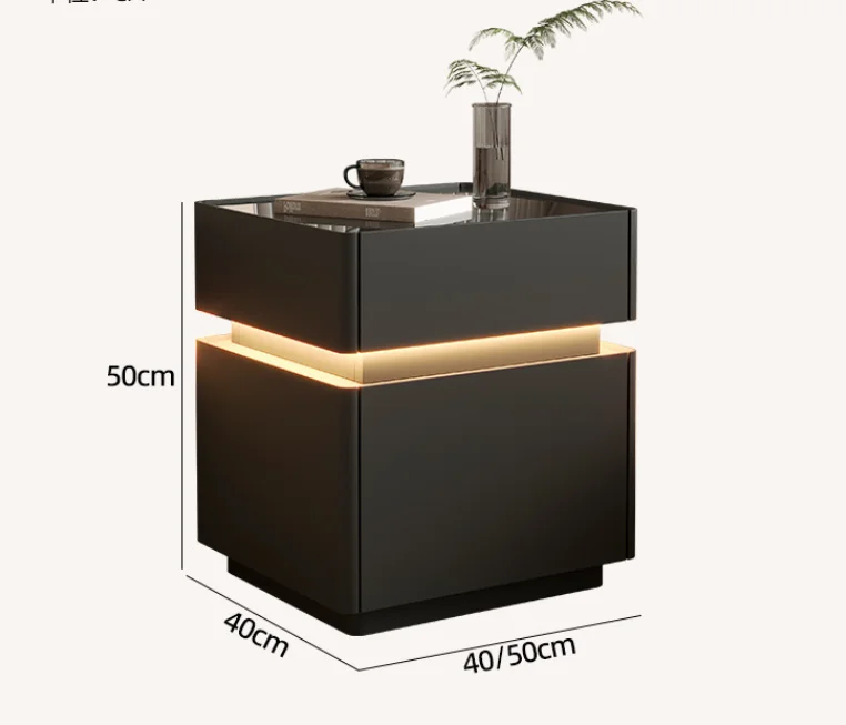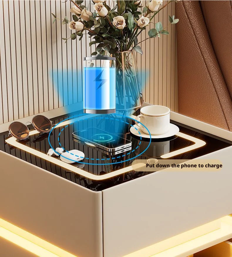 Multifunctional Side Table Wireless Charger LED Lamp Voice Control Storage Cabinet Movable Leather Home Apartment Furniture