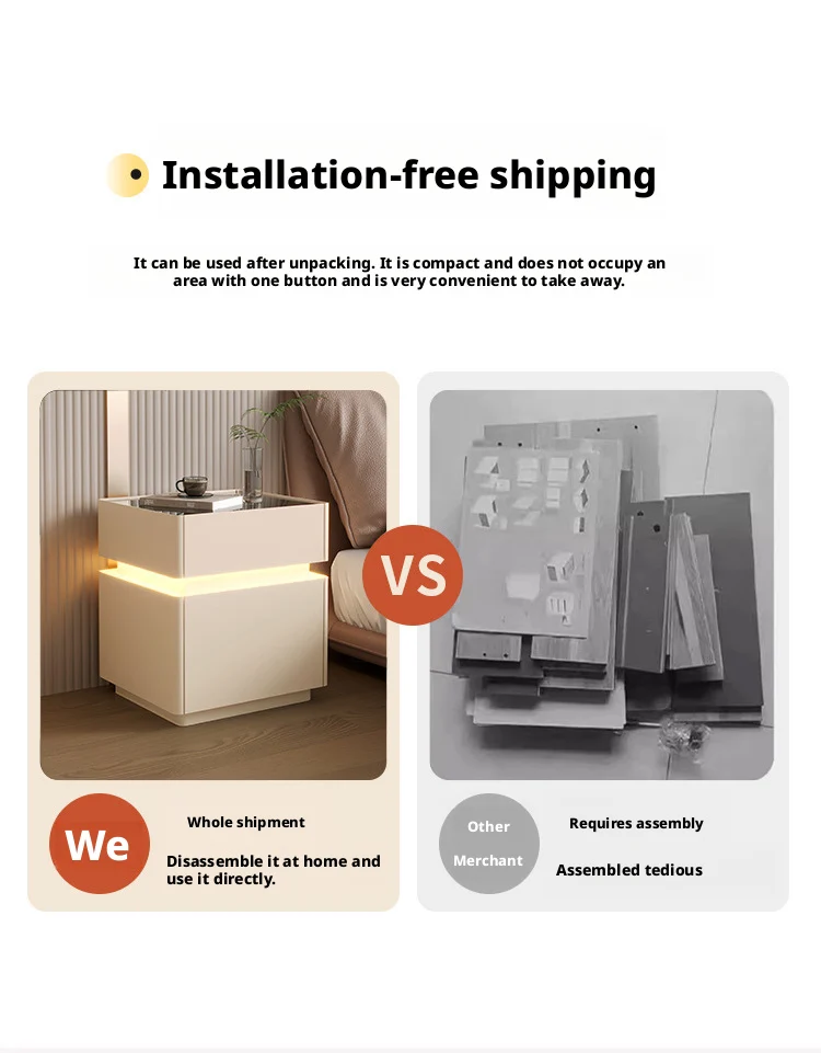 Eco Friendly Cream Wooden Nightstand 2 Drawers Large Capacity LED Light Simple Modern Bedroom Storage Fast Shipping