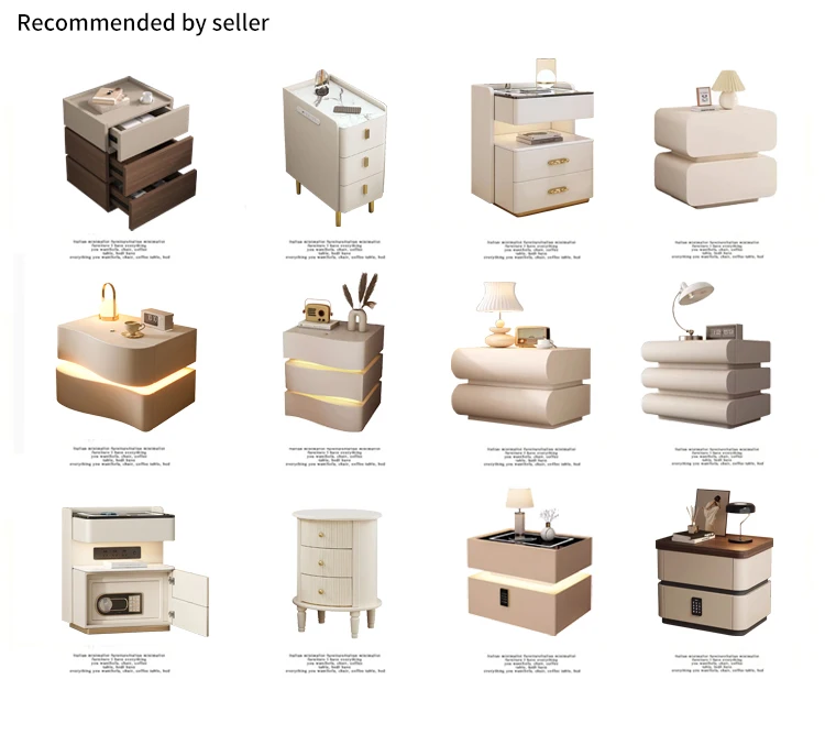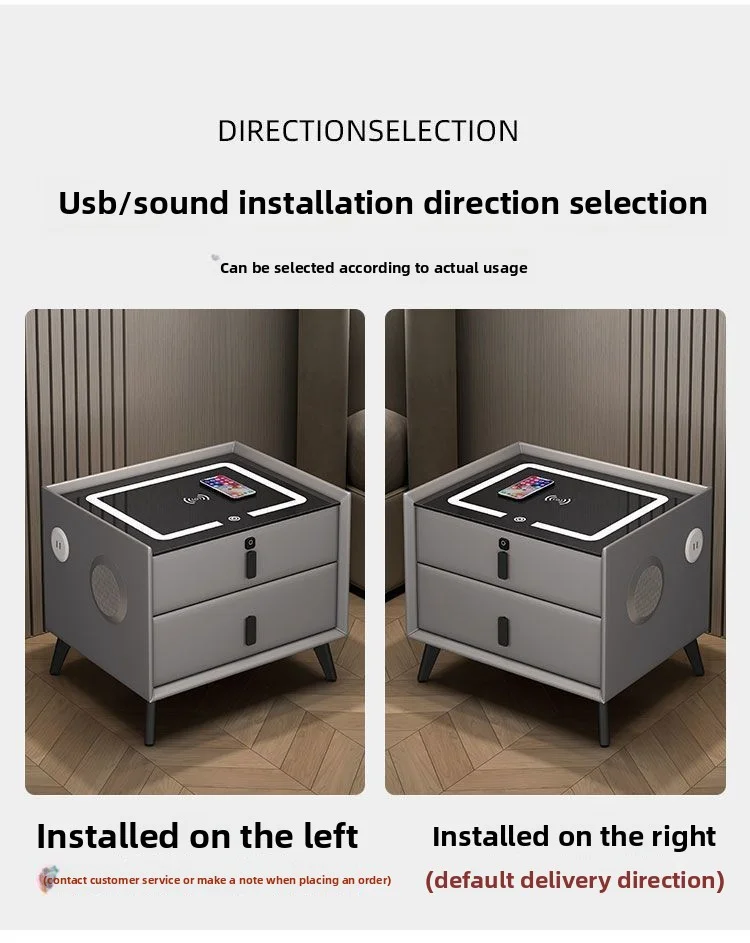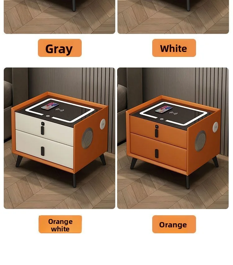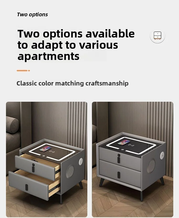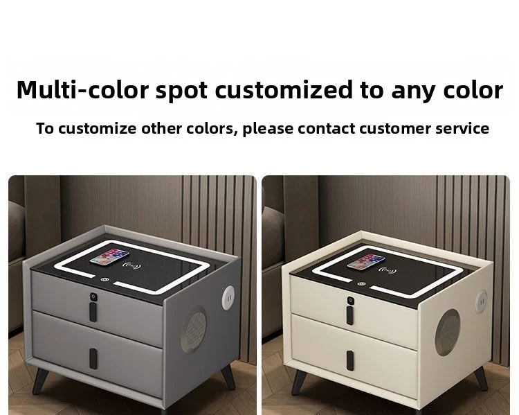 Modern Solid Wood Nightstands Multi-Functional Smart Bedside Cabinet Light Fingerprint Lock Wireless Charging Bluetooth Bedroom