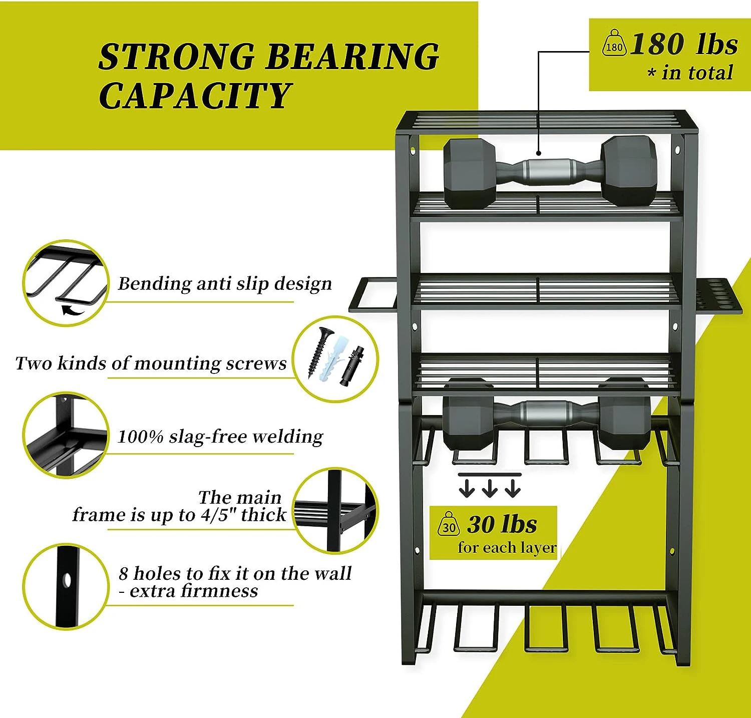 Multifunctional Black Carbon Steel Power Tool Organizer Drill Holder with Five-Tier Wall Mount Rectangle Garage Use Utility Rack