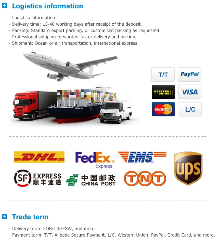 A: 3-7 days for sample order, 15-25 days for bulk order, depending on the order quantity and customisation requirements. The tracking info will be provided(15 days by air 30-45 days by sea)